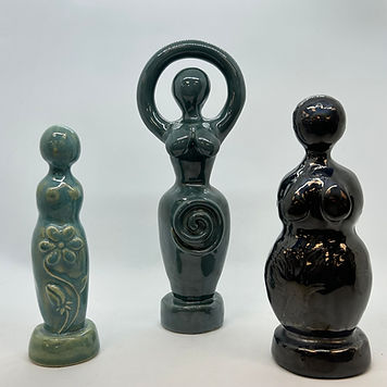 This is a relaxed, 3 hour hands-on experience where you’ll leave with something unique and entirely your own. All materials provided. Small class size (8 students) and patient instructors. PART 1 -Join us for a workshop of celebrating divine feminine energy! Tune your energy waves towards the studio and see what your hands create! Have you ever heard of the “Maiden, Mother, Crone”? We are hosting a special event in which you can come to the studio and create your own goddess, altar, runes, or anything that aids in your devotion. Last year, we hosted 6 women who created pieces for themselves and as gifts for friends and loved ones. The energy in the studio that night was electric! Chock-full of laughter, intimate storytelling, wisdom exchanges, and so many more wonderful things. We have been itching for this special event to run, and we can’t wait to feel the power again… You can copy and paste this link into your browser to check out our Pinterest page for even more mug inspiration: (https://ca.pinterest.com/eccentricartiststudio/class-inspo/goddess/) You will work with two basic clay techniques, Slab and pinch to create your pieces. PART 2 - GLAZING: After your workshop, return for a glazing session (included). Your finished piece will be ready in 2–3 weeks. ONLINE REGISTRATION CLOSES AT 9PM THREE DAYS BEFORE THE SCHEDULED EVENT. TO REGISTER AFTER ONLINE REGISTRATION CLOSES, PLEASE CALL US AT 778-757-3274. *Photo Disclaimer* The two photos including a glass pendant, polished white stone, and two raku broaches were NOT made in the Eccentric Artist Studio. These supplementary photos are to act as inspiration and are personal effects of the owner.